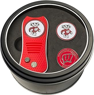 Team Golf NCAA Gift Set Switchblade Divot Tool with 3 Double-Sided Magnetic Ball Markers, Patented Single Prong Design, Causes Less Damage to Greens, Switchblade Mechanism